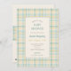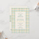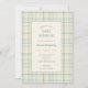 This neutral gender Pastel Plaid baby shower invitation combines soft teal, honey yellow and cream in a framed design with typography text.