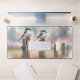 Pastel Watercolor Birds Fencepost Sunset