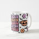 Start you day with a spell! This groovy pastel Halloween mug features skull coffee cups, bats, daisies, and the hilarious pun. Perfect for witchy caffeine addicts!