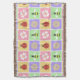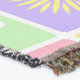 Les carrés pastel roses, jaunes, violets et verts sont ornés de coccinelles, de fleurs de bois de chien, de marguerites et d'abeilles, puis bordés de coutures blanches serrées pour créer un motif de printemps amusant et doux.