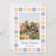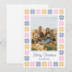 Cette carte de vacances à plat est constituée d'une seule photo encadrée dans une ligne solide et de formes géométriques patchwork de vacances formant une bordure autour de la photo.