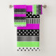 Patchwork de rayures noir et blanc et néon avec pourpre et tissu vert