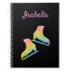 Carnet de patinage sur glace personnalisé Rainbow pour patineur artistique (fille ou garçon) - conception de patinage sur glace - cadeau de patinage sur glace pour prendre des notes ou créer un journal. Couleurs : Arc-en-ciel et rose sur arrière - plan noir. Design : Paire de patins à silhouettes + personnalisation avec le nom du patineur de glace. Conçu par iceskatingpassion.com. Autres couleurs dans la boutique https://iceskatingpassion.com/stores/