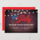 Cette 4 juillet invitation à fêter présente un arrière - plan rustique en bois, agrémenté de cordes de lumières sur le dessus. C'est parfait pour vos amis et votre famille des fêtes barbecues du 4 juillet.