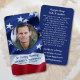 USA American Flag Memorial Funeral Prayer Card. Cette carte de prière commémorative militaire présente un drapeau des États-Unis d'Amérique dans un design moderne rouge blanc bleu. Avant "In Loving Memory" Personnalisez cette carte de prière funéraire militaire avec vos proches photo, nom & dates, et sentiment. Retour ~ Poème 'Puissiez-vous toujours marcher dans Sunshine', s'il vous plaît tendre la main si vous voulez un design avec un poème spécifique autre que. Cette carte de prière du drapeau américain est un souvenir précieux, un service funéraire militaire, un service commémoratif ou une célébration de la vie. Dans Loving Memory Military Memorial American Flag Prière Cartes. DROIT D'AUTEUR © 2020 Judy Burrows, Black Dog Art - Tous droits réservés. Patriotique American Flag - Carte de prière