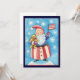 Illustration vintage mignonne Joyeux Noël design avec un père Noël patriotique, adorable, joyeux, portant des vêtements rouges, blancs et bleus et tenant un drapeau américain et un ours en peluche. Les étoiles brillent dans le ciel nocturne comme des flocons de neige qui neigent en hiver. Paix sur Terre. Bonne image pour la période des fêtes de Noël ou pour 4 juillet!