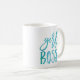 La tasse à café parfaite pour les patrons filles partout! Cette mignonne tasse à café présente une typographie moderne de l'aquarelle aqua. Ajoutez du texte ou des images en cliquant sur le bouton Customiser.