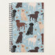 Chiens adorables Labrador Retriever aux couleurs noir, chocolat, rouge et jaune. Chiens de laboratoire avec des empreintes de pattes et des os de chien motif.
