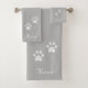Pattes d'animaux et texte de nom modifiable sur ensemble de serviettes de bain gris clair. Design simple élégant pour les amoureux des animaux !