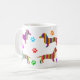 Si vous êtes un propriétaire de teckel ou adorez juste des teckels, alors cette cuisinière conçue par teckel colorée par arc-en-ciel des tasses de café et tasses sont pour vous. Les caractéristiques de conception six teckels et douze multicolores ont coloré des empreintes de pattes. Ces tasses de café de haute qualité sont disponibles dans une série de styles, tailles et couleurs, et sont sûres de devenir votre tasse préférée de boissons !