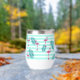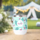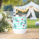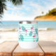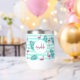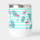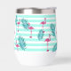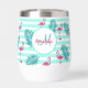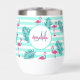 Des rayures blanches et vertes à la menthe, ornées de flamants roses et de feuilles de palmiers. Personnalisez et ajoutez votre nom initial et prénom monogramme. Texte rose et vert.