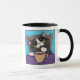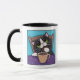 Tasse lunatique d'amusement comportant un chat noir ayant une pause café. Illustrations originales : acrylique sur le © de toile Lisa 2008 Marie Robinson