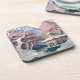 Un beau faux papier découpe paysage dessous de verre en plastique dur avec montagnes, pavillons et arbres.