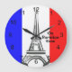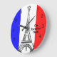 Drapeau français et Tour Eiffel Horloge design avec texte personnalisable.