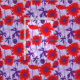 Tissu à motif ridé à feuilles violettes et pavot rouge. Conçu par Sarah Trett.