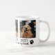 Cette tasse amoureux des chiens fabuleuse qui a le nom de votre chien et des années en vie qui dit, "Vos empreintes sont pour toujours sur mon coeur." tout en noir polices modernes et a des places pour 3 photos de votre bébé en fourrure serait parfait pour vous de commémorer votre chiot doux! C'est un excellent gardien et chaque fois que vous l'utilisez, vous vous souviendrez avec amour de votre bébé chien doux.