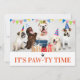 Paw-ty Time Chien Theme Anniversaire 5 Photo Carte photo de vacances de Ricaso - conçu avec un merveilleux texte moderne et audacieux à l'avant - cette simple invitation à la fête à thème chien amusant où les humains bien élevés sont autorisés est une excellente façon de célébrer votre anniversaire de membres de famille furry .. facile d'ajouter votre propre texte et cinq photos - votre enfant de fourrure mérite d'avoir leurs amis chien à ses fêtes d'anniversaire