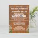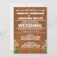 Arrière - plan en bois Brown texturé avec lettres blanches audacieuses et fleurs blanches. Ajoutez les détails de votre mariage pour un faire-part de mariage unique.
