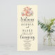 Évoquez la splendide essence de l'automne avec notre programme de mariage jaune de soie, une délicieuse fusion de modernité et de charme bohème. Ce programme exquis présente un design d'automne enchanteur qui résume l'essence de la saison, parfait pour les mariages d'automne ou d'automne. L'accueillante toile de fond jaune de soie de maïs sert de toile à un éventail enchanteur d'éléments Fall. Le design met en valeur quatre citrouilles captivants : trois citrouilles d'orange clair délicieux, un citrouille orange et blanc éclatant. Ces charmants citrouilles complètent magnifiquement les feuilles orange et vert ombragés, imprégnant le design de la chaleur et de la vitalité du feuillage Fall. Ce programme de mariage incarne l'esprit de la saison, dégageant une atmosphère accueillante qui résonne avec l'élégance rustique et les couleurs captivantes de l'automne. En retournant au fond, on découvre une liste bien organisée de la fête de mariage, présentée dans un agencement sophistiqué. Le texte, principalement dans une combinaison harmonieuse de noir et de gris, offre une présentation claire et moderne. Notamment, les mots Welcome, Ceremony et Wedding Party sont rédigés avec élégance, créant un contraste saisissant avec le reste du texte, renforçant l'attrait esthétique général. Offrez-vous le charme captivant de l'automne avec ce programme de mariage jaune de soie, conçu pour compléter et améliorer l'ambiance de votre célébration automnale.