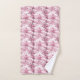 Joli motif de toile rose sur fond blanc pour cet ensemble de serviettes de bain. L'ensemble comprend une serviette de bain, un gant de toilette et une serviette de toilette.