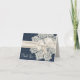 Carte de remerciement de mariage chic réalisée dans des graphismes qui ressemblent à un motif damassé en denim bleu sur bleu. Des graphismes supplémentaires d'un napperon en dentelle de couleur ivoire ornent l'avant côté droit, et un ruban et un nœud en satin ivoire s'étendent sur le milieu de la carte. Le texte ivoire, sur le devant, indique "Merci". Personnalisez le texte sur le devant et le texte bleu à l'intérieur selon vos besoins. Une façon charmante d'envoyer vos remerciements après le mariage.