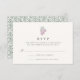 La carte RSVP chic Wine country présente un élégant lettrage gris charbon avec une petite illustration d'une grappe de raisins rouges et de feuilles verts dans un style gravé vintage. Customisez avec la date RSVP souhaitée ainsi que le texte personnalisé accepter et refuser. Les cartes retournent vers une vigne botanique et un motif bourgeon dans le vert chasseur correspondant. Conçu pour coordonner avec notre suite d'événements Pays du Vin, c'est un choix parfait pour des soirées de dégustation de vin, des événements sur le thème du vin et des mariages de vignobles ou de vignobles.