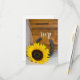 Customisez la carte avec du charme de réponse de mariage campagnard de tournesol et de fer à cheval avec votre date spécifique de réponse de rsvp de mariage. Réponse l'épousant rustique faite sur commande de ces la jolie r.s.v.p. carde la caractéristique une photographie florale étrange d'une fleur jaune de tournesol, d'un fer à cheval rouillé et d'un voile nuptiale blanc avec un arrière - plan brun patiné en bois de grange.