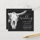 Invitation vos invités à votre journée spéciale avec ces invitations noires et blanches de mariage de l'ouest de la ferme rodéo crâne taureau. Arrière - plan de texture rustique pour customiser vos informations sur. Copyright de l'image Marg Seregelyi Photography.