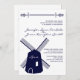 Commandez 100 Invitations - Économisez 40% Une simple invitation de mariage campagnard rustique avec un moulin à vent de style hollandais en bleu marine au bas de l'invitation. L'arrière de l'invitation a également le design du moulin à vent de style Pays-Bas. Ces invitations sont parfaites pour un mariage de style campagnard extérieur ou tout mariage tenu dans un lieu mariage de moulin à vent.