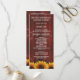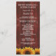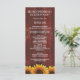 Country Red Wood Rustic Sunflower Wedding Programmes - présente un arrière - plan en bois de grange rouge en détresse avec des tournesols au fond. Le dos est décoré de la même façon.