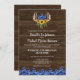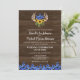 Invitation au mariage campagnard rustique gaie avec de grands bois de cerfs avec un bouquet de fleurs de cloches bleues, tournesols jaunes et fougères vertes. Le bas de la feuille est orné de cloches bleues. **Consultez mon magasin pour trouver les produits correspondants!