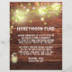 Boite rustique en bois de maçonnerie mariage chaîne de lumières branche arbre avec feuilles verts papier de carte Honeymoon Fund. Le cordon lumineux illumine les feuilles verts contre un beau bois rustique brun foncé. Ce design mariage rustique est personnalisable et parfait pour votre magnifique mariage campagnard extérieur. Vous pouvez personnaliser en modifiant le texte et en ajoutant des images si vous le souhaitez. Vous pouvez également choisir un type et une épaisseur de papier différents. Pour les articles correspondants, veuillez consulter la collection ci-dessous avec d'autres articles dans la suite mariage rustique.