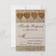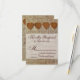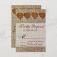 Une carte-réponse en mariage campagnard rustique avec un design de burlap imprimé rustique et quatre coeurs en bois en rang sur le dessus de la carte-réponse. Entièrement personnalisable avec vos propres détails. Le burlap n'est qu'un dessin imprimé sur le papier d'invitation de votre choix, ce n'est pas un tissu de burlap réel. Voici l'ensemble d'invitations personnalisées de mariage correspondant :