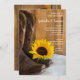Célébrez votre amour avec le charme rustique du Country Sunflower Western Faire-part de mariage. Parfait pour un mariage de style agricole informel mais élégant, cette délicieuse invitation allie une touche d'inspiration occidentale à une romance intemporelle. Avec un agencement douillet de bottes de cowboy en cuir marron, une fleur de tournesol jaune vif et un décor rustique en bois de grange marron sur un motif doux en satin blanc, cette invitation donne le ton parfait pour un mariage à la grange ou une fête inspirée du ranch. Customisez-le avec vos coordonnées de mariage, y compris les noms, la date, l'heure et le lieu, pour créer un véritable souvenir personnel. Que vous soyez une mariée de cow-girl ou un marié de cow-boy, cette invitation est une parfaite correspondance pour votre histoire d'amour et des nuptiaux décontractés de la campagne. Il est disponible sous forme d'invitation imprimée pour l'envoi traditionnel ou en téléchargement numérique pour un partage en ligne pratique. De la cérémonie de la grange à la réception animée dans le style de la ferme, cette invitation à thème occidental est une merveilleuse façon pour les amis et la famille invitations de se joindre à votre joyeuse fête.