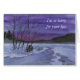 Un minuscule paysage aquarellé d'un champ enneigé et d'une crique avec des montagnes contre un ciel brillant, le soir, orne cette carte sombre. Customisez en changeant le texte pour vous adapter.
