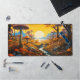 Ce tapis de bureau créatif illustre une forêt de champignons vibrante, au coucher du soleil.