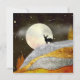 Un paysage Abstrait dans des tons éclatants d'argent, d'or et de rouge avec une lune, des étoiles et un cerf.