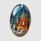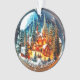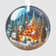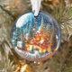 Cette belle boule de Noël contient un village de montagne entier dans la neige, tout illuminé pour Noël.