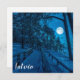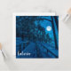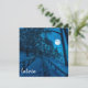 Paysage d'hiver avec pins et sapins enneigés au clair de lune à nuit étoilée avec pleine lune. Vue sur la forêt de conifères avec chemin en bois près de la côte de la mer avec un beau ciel nocturne avec étoiles