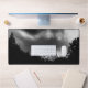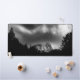 Photographie de paysage longue exposition en noir et blanc. Ciel spectaculaire avec montagnes enneigées et rivière coulante.