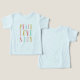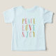 T-shirt de vacances sur mesure avec un design typographique fantaisiste. Le texte dit Peace Love and Joy dans les couleurs boho.