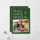 Notre carte photo de vacances Peace Love and Kindness est parfait pour envoyer un message gai à vos amis et votre famille ce Noël. L'avant est décoré d'une couleur verte audacieuse avec un message unique et une seule photo. Le dos est vide, vous pouvez ajouter des photos supplémentaires ou inclure un message plus long. Il y a beaucoup de place pour votre lettre de Noël annuelle!