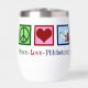 Un joli cadeau phlébotomiste avec un signe de paix, un coeur et des flacons de sang. Peace Love Flebotomy vin tumbler.