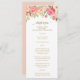Cette carte de menu mariage de fleurs de tourbe rose et pêche est parfaite pour un mariage élégant. Le design floral présente un bel agencement de pivoines d'aquarelle dans des tons de rougeur et de corail assortis à de somptueuses calligraphies de feuilles d'or imitation. Remarque : Ce design ne comporte pas de véritable feuille d'or. C'est un graphisme de haute qualité fait pour ressembler à du papier doré.