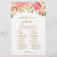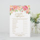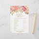 Ce jeu de pêche et de pivoine rose "devinez le bon prix" est parfait pour un baby shower de filles élégant. Le devant de la carte de jeu comporte "devinez le bon prix", et le dos de la carte contient "ce qui est dans votre téléphone". Le design floral présente un bel agencement de pivoines d'aquarelle dans des tons de rougeur et de corail assortis à de somptueuses calligraphies de feuilles d'or imitation. Personnalisez l'avant de la carte avec le nom de la mère à être et la date du baby shower. Vous pouvez personnaliser les questions du jeu en cliquant sur le bouton "personnaliser". Remarque : Ce design ne comporte pas de véritable feuille d'or. C'est un graphisme de haute qualité fait pour ressembler à du papier doré.