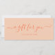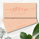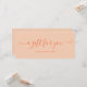 Certificat cadeau simple et élégant de script minimaliste pêche fuzz. Cet élégant certificat cadeau de script s'intègre parfaitement dans une enveloppe professionnelle standard #10. Parfait pour votre marque et votre entreprise.