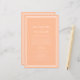 Élégant et minimaliste programme de cérémonie de pêche et de mariage blanc présente un design moderne simple avec une bordure double encadrée en blanc immaculé sur un arrière - plan de pêche. La formulation classique et traditionnelle apporte une sophistication intemporelle. Personnalisez les détails de la cérémonie du mariage pour vos invités dans des lettres et des scripts de calligraphie blanche à la mode. Le dos de la carte est assorti au blanc sur la pêche et il s'agit de votre fête de mariage. Pour des résultats optimaux, remplacez les détails du modèle par vos propres détails en laissant de l'espace entre les paragraphes comme dans l'exemple. Capitalisez et utilisez tous les coques inférieurs lorsque cela est spécifié. N'hésitez pas à me contacter à l'adresse invitationsuites@gmail.com ou avec la fonction de message si vous avez des questions concernant ceci ou l'un de nos produits ou avez une demande de couleur personnalisée.