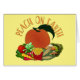 Pêcher sur Terre, Bonne volonté à tous les fruits et légumes. Aha, pendant toutes ces années tu pensais que c'était "Paix sur Terre", etc. OK, c'est aussi une chose. Mais si vous changez le "h" en "e", vous avez une façon complètement alternative et désagréable d'envoyer ou de dire un salut de Noël qui est spécialement pour les végétariens, les végétaliens, et tous les amateurs de fruits et légumes sains. Qui est à peu près tout le monde, si vous ne comptez pas la viande, n'est-ce pas ? Voici donc une carte de voeux de vacances mignonne avec le souhait de vacances sur le devant, coloré illustré par ladite pêche et légumes, et "Bonne volonté à tous les fruits et légumes" à l'intérieur, dans une police amusante et charmante, accentué d'un coeur et d'un épanouissement. Joyeuses Vacances Incluses !