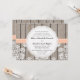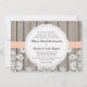 Des invitations à des mariages rustiques en ruban et en dentelle avec une clôture en bois patinée imprimée, une tête à ongles, un ruban de pêche et un ruban de corail pâle à la crème, du grain de bois et de la dentelle ancienne en damas sont parfaites pour une vintage cérémonie de mariage à thème de la ferme, de la ferme ou de la campagne. Créé et réalisé par Chrissy H. Studios, LLC.Tous droits réservés.