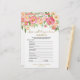Ce jeu rose pêche "comment bien connaissez-vous la mariée" est parfait pour une douche nuptiale élégante. Le devant de la carte de jeu comporte "comment connaissez-vous bien la mariée", et le dos de la carte contient "ce qui est dans votre sac à main". Le design floral présente un bel agencement de pivoines d'aquarelle dans des tons de rougeur et de corail assortis à de somptueuses calligraphies de feuilles d'or imitation. Personnalisez l'avant de la carte avec le nom de l'épouse et la date de la douche de l'épouse. Remarque : Ce design ne comporte pas de véritable feuille d'or. C'est un graphisme de haute qualité fait pour ressembler à du papier doré.